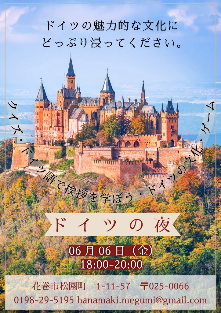 6月6日に、教会でドイツナイトを行います。誰でも大歓迎です。