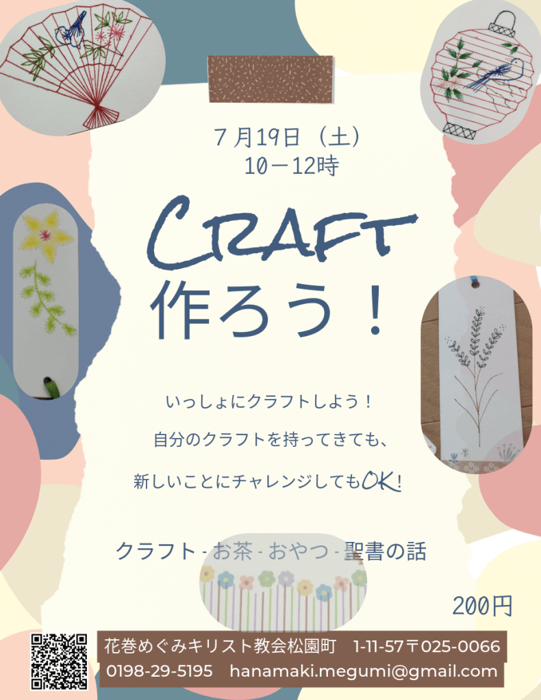 夏休みに教会のスぺシャルイベントを行います!その中の一番目は以下の手作り会です。経験者も、初心者も、誰でも大歓迎です。