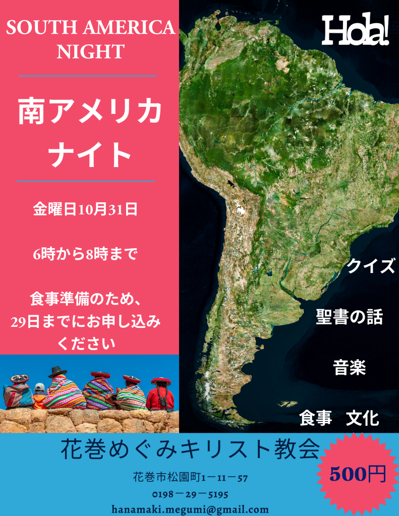花巻めぐみキリスト教会で南アメリカナイトが開催されます!